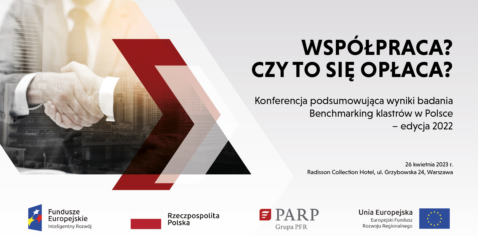 We would like to invite you to participate in the conference summarizing the study's results entitled "Benchmarking of clusters in Poland - Edition 2022 Cooperation? Is it worth it?, which will be held in Warsaw on April 26th, 2023 (study commissioned by the Polish Agency for Enterprise Development conducted by the consortium: Innoreg Sp. z o.o. and the Polish Clusters Employers' Association).
